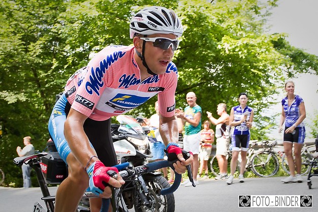 Schon gestern stand Amplatz-BMC-Profi Jan Tratnik aus Slowenien als Gewinner der „Flyeralarm“-Punktewertung fest. Zu einem packenden Krimi kam es heute um das rot gepunktete „Wiesbauer“-Bergtrikot: Der Franzose Julien El Fares gewann die ersten beiden Bergwertungen und schob sich damit vor Felix Großschartner. Doch bei der letzten Wertung am Hochtannberg schlug Felix zurück, gewann und überholte doch noch den 30-jährigen Franzosen! Glocknerkönig Großschartner ist damit nach Georg Preidler 2012 der nächste österreichische Bergkönig! „So nervös wie heute Früh war ich noch nie vor einem Rennen. Es sah nach der 2. Bergwertung alles andere als gut für mich aus und vor dem Hochtannberg habe ich alles auf eine Karte gesetzt. Glocknerkönig und Bergtrikot - besser geht es nicht“, jubelte Großschartner.